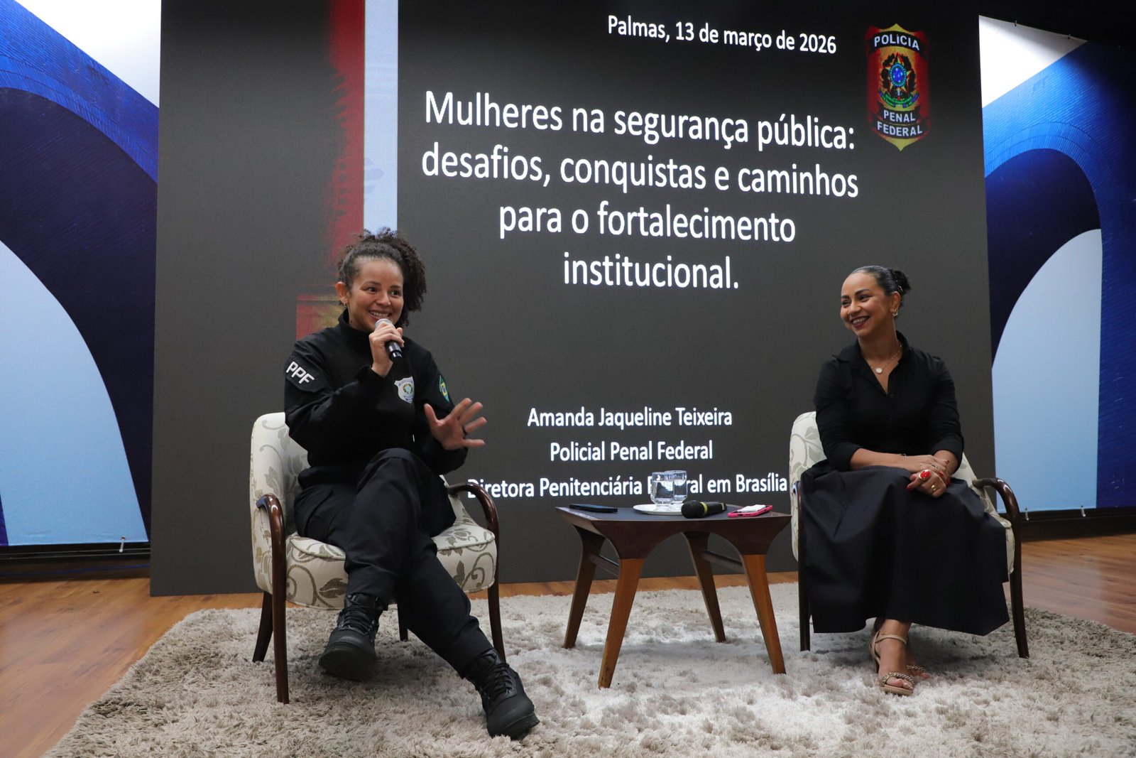 A programação faz parte das celebrações do Dia Internacional da Mulher e contou com palestras da secretária da Mulher, Berenice Barbosa, e da policial penal federal e diretora da Penitenciária Federal em Brasília, Amanda Teixeira. O encontro fortaleceu o compromisso institucional com a valorização das mulheres, promovendo a troca de experiências em áreas estratégicas como segurança pública, gestão e direitos humanos.